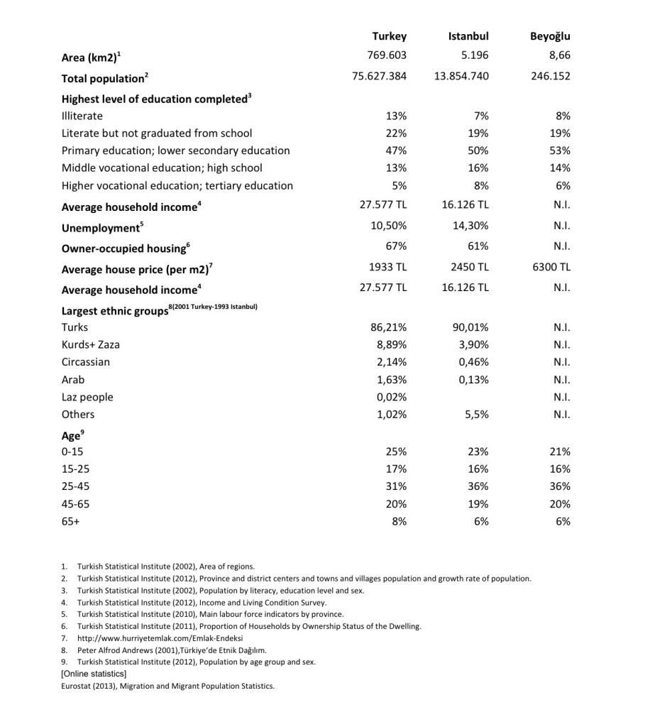 Beyoğlu is one of the most distinctive residential and recreational areas of the historical centre of Istanbul, mostly known as the area centred on İstiklal Street from Taksim to Tünel (Ergun, 2004). The district is comprised of 45 neighbourhoods encompassing its famous quarters located on the north of the Golden Horn.