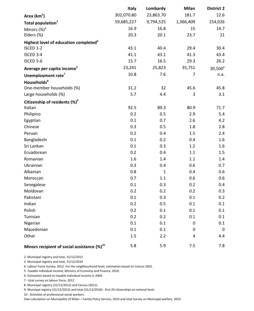The presence of transport facilities and of some deteriorating housing eased the settlement of international migrants. Nowadays, 28% of residents are foreigners – by far the highest share among Milan districts. It, also has a peculiar profile: together with nearby District 9, it has the highest share of male migrants, but also the highest share of young children with foreign citizenship.